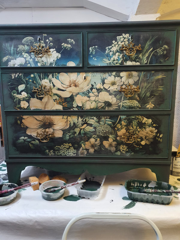 Kommode grün mit Decoupage Bild