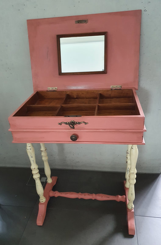 Altes Tischchen mit Klappdeckel verschliessbar